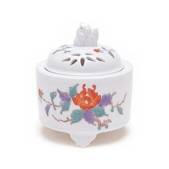 Vibrante estilo Kinrande Floral detalle japonés Arita Ware quemador de incienso porcelana blanca peonía bambú cilíndrico para el hogar
